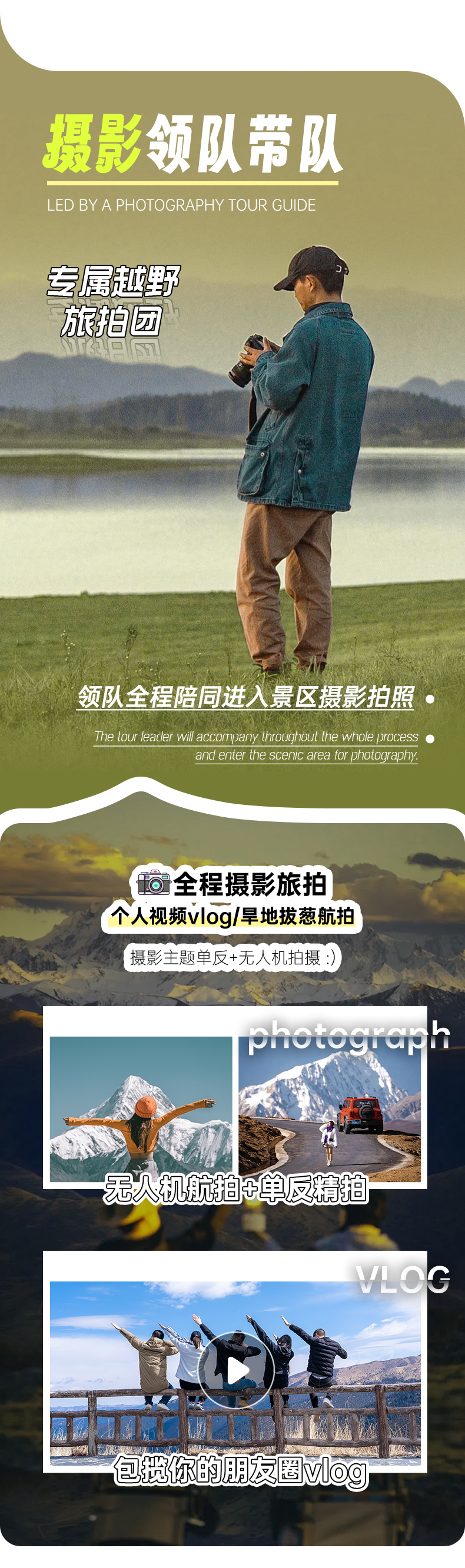 专业司机兼领队,全程跟随进入景区拍照