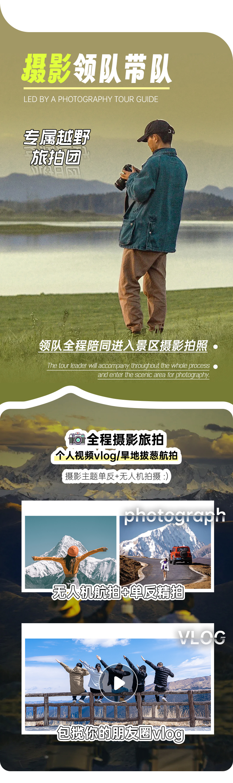 1:全程专业摄影领队出片+领队情绪价值。 2:全程高标准酒店住宿。 3:参加报名赠送一份最新版精美旅游攻略地图(独家)