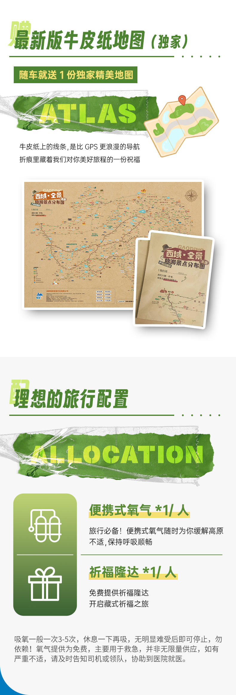 川藏线、四川、拉萨、甘青环线大部分景点海拔在3000米以上,快速进入海拔3000米以上高原时,会产生不同程度的高原反应。