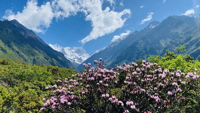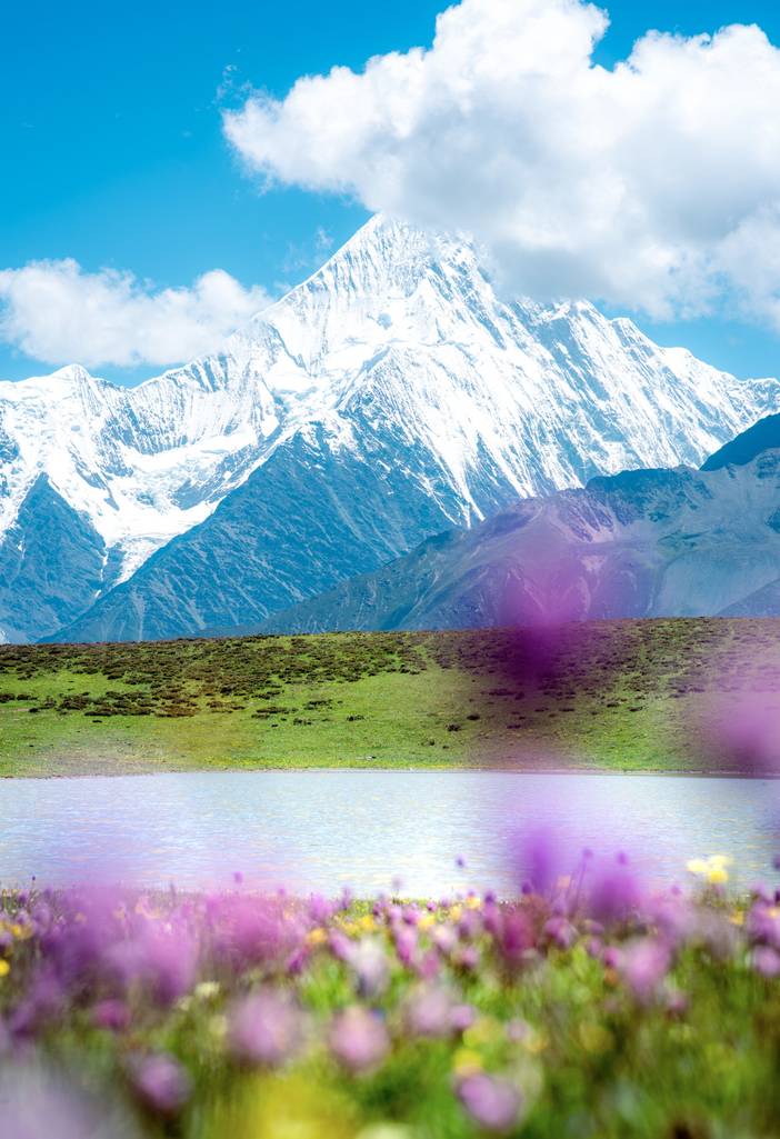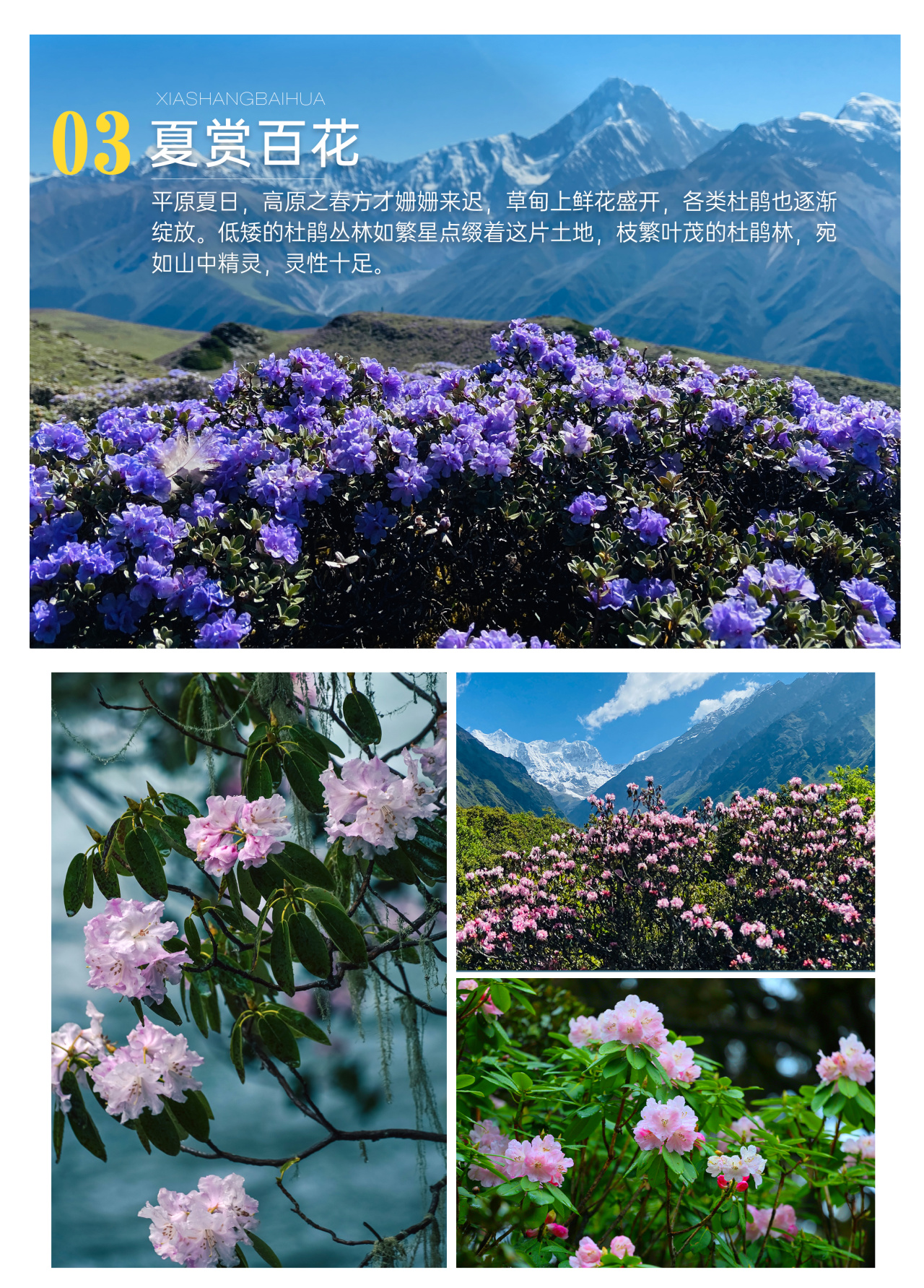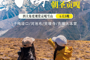 每年5-7月份漫山遍野高山杜鹃,高原野花如炽尽态极妍,映衬圣洁雪山,分外娇艳。徒步于此,恍若世外仙境。上午徒步结束后乘车到达中子梅村,前往贡嘎寺,徒步6公里大约2个半小时到达,为大家准备了桌椅,可以在这里喝一个下午茶,观赏贡嘎雪山日落金山,还有贡嘎雪山的星空,晚餐为大家煮火锅。