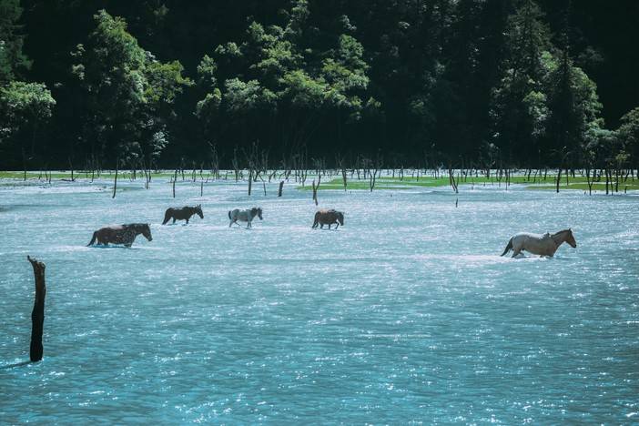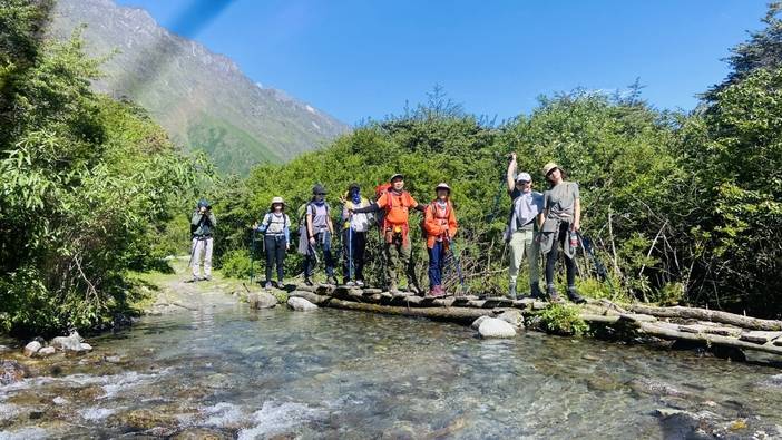 早上6点30酒店集合出发,乘车大约5小时,沿大渡河到达草科乡,午餐后乘车40分钟前往徒步起点(巴王海停车场)开始徒步,路过6000米级雪山三连峰,到达巴望海,穿过沙棘林,有中转车来接我们到达下子梅村入住,徒步9公里。