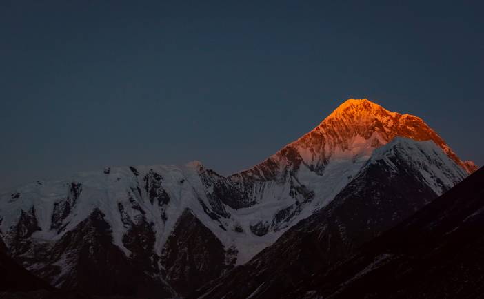 早上早餐后出发贡嘎大本营,最大近距离的欣赏到贡嘎雪山,感受蜀山之王的雄伟,中午开始下撤,一路下坡回到下子梅村。晚上贡嘎雪山自然保护区护林员进行兽类图鉴,给大家观赏众多的图片和视频,了解贡嘎西坡丰富的野生动物们(如:岩羊、雪豹、毛冠鹿、高山狼等),宣传保护野生,守护绿色山林。