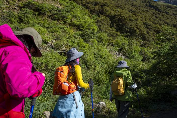 2.需穿防水的登山鞋或者徙步鞋,路途中时常是连续两三个小时的上坡或者连续两三个小时的下坡,没有一双好的鞋会比较辛苦。