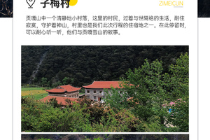 注:全程信号弱,电信联通无信号,移动有,村里和贡嘎寺晚上十点左右有可能断电话信号。下子梅村民宿有WiFi。避免影响工作生活,请提前解决好工作有关事宜。