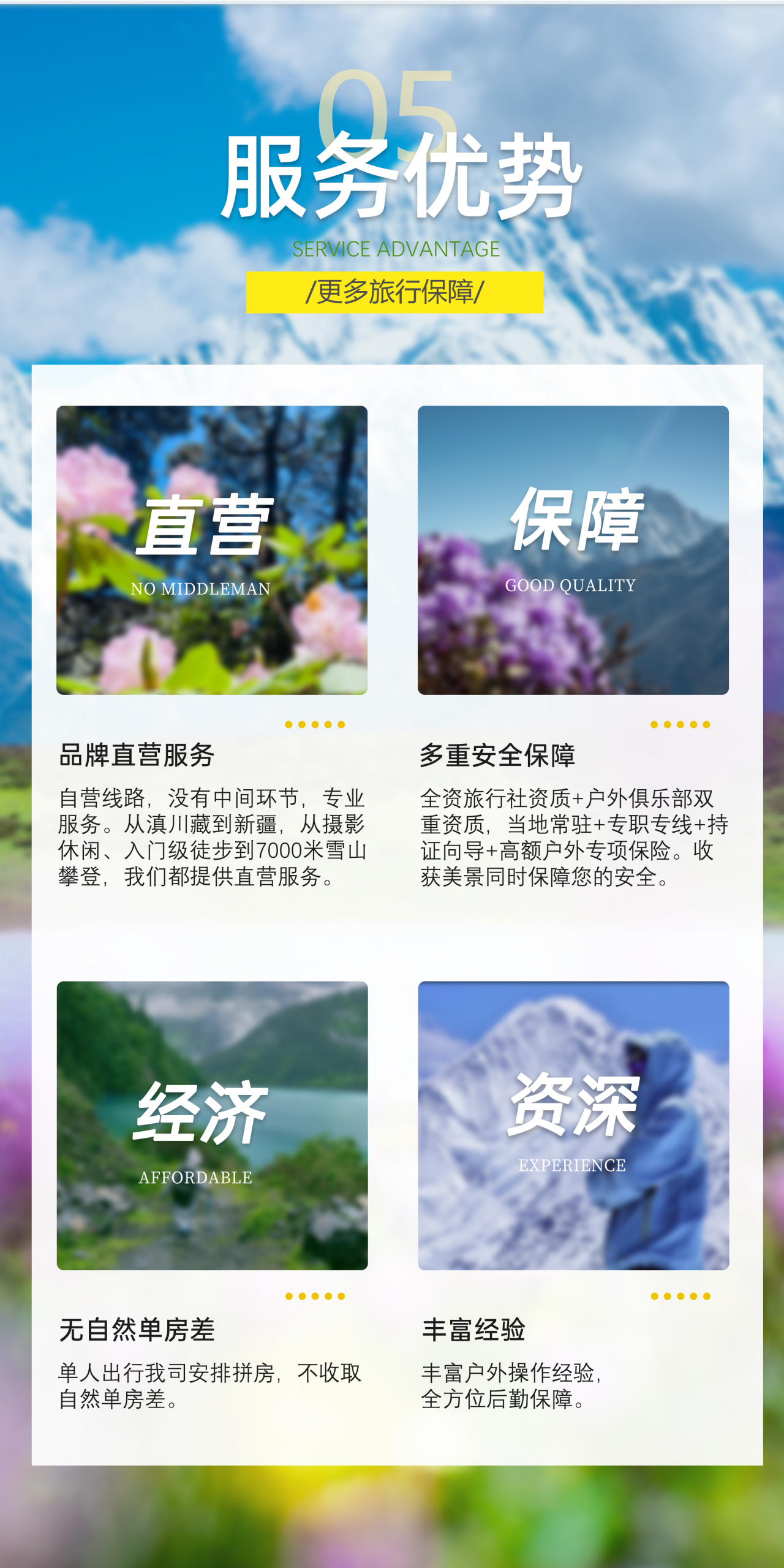 5.向导:随团根据人数配备向导服务,并提供基础拍照服务;