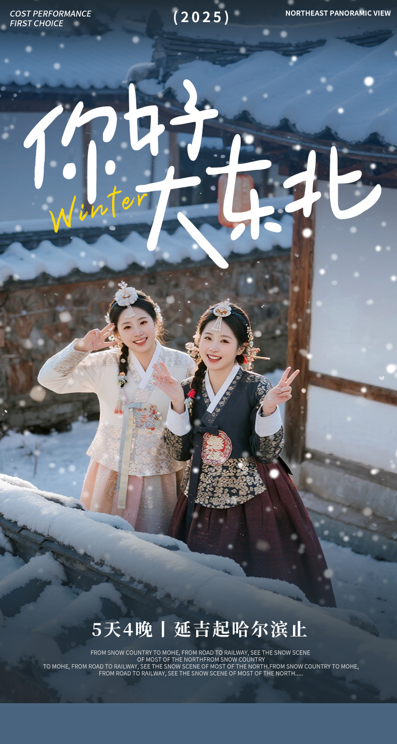 4、门票:图们中朝友谊桥门票、长白山雪岭门票、雪乡门票+往返环保车、长白山北景区全含(门票+往返环保车+摆渡车+天池倒站车)、雪乡滑雪3小时包含雪鞋雪板雪杖使用(滑雪时间从取雪具开始计算,到还雪具结束);