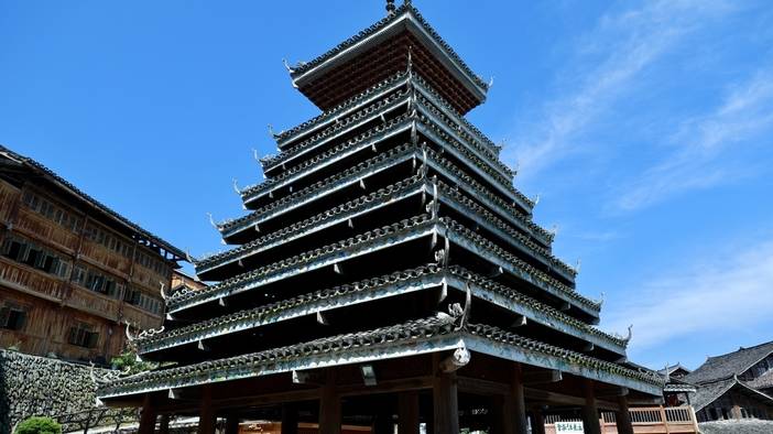 肇兴侗寨,位于贵州黔东南州黎平县东南部。占地18万平方米,居民1100余户,6000多人。是全国最大的侗族村寨,也是侗族的民俗文化中心,素有“侗乡第一寨"之美誉。肇兴不仅是鼓楼之乡,而且是歌舞之乡,寨上有侗歌队、侗戏班。