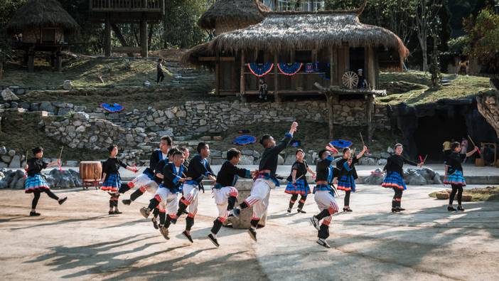 走过这三道门,便踏入了这神秘的古寨。我们将在这里体验【非遗竞技一抽陀螺]同时也在这里体验不一样的一顿当地特色宴席瑶王喜宴,观看一场当地的少数民族特色表演回到酒店。