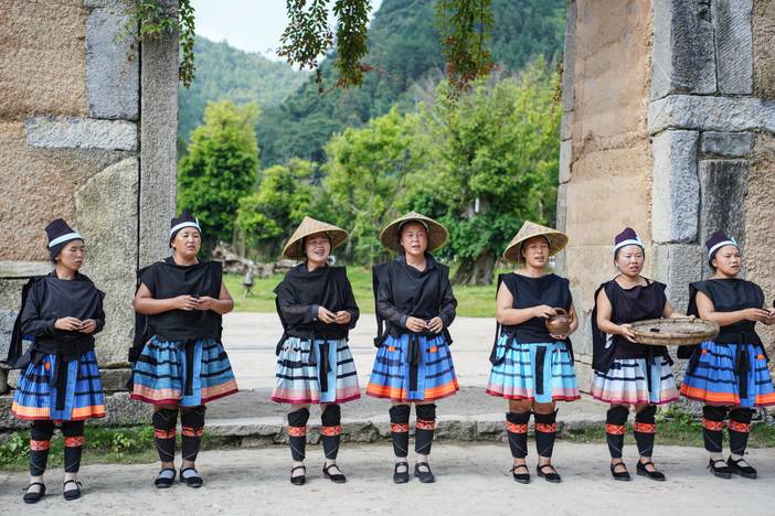 瑶山古村落有三道寨门,据说第一道叫疆域门,代表正式踏入了白裤瑶族世世代代居住的疆域。第二道叫防御门,是古时瑶王带领族人抵御外敌的第一道关卡。第三道叫迎宾门,有朋自远方来,好客的白裤瑶族在客人来访时会列队鸣枪敬酒。