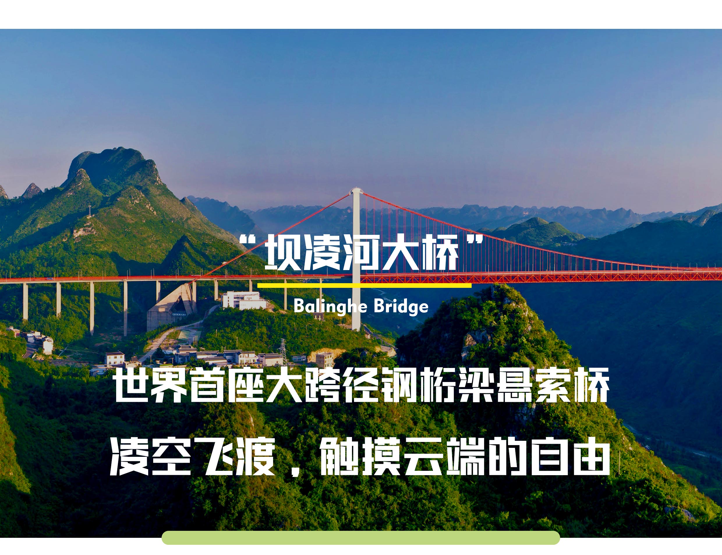 【上午】早餐后,贵州是世界桥梁博物馆,让我们去世界第十高的桥梁走一走,世界吉尼斯记录前十的高桥,有五座在贵州。我们就将登上世界第十的高桥——坝陵河大桥,去近距离感受这近400米高度落差。