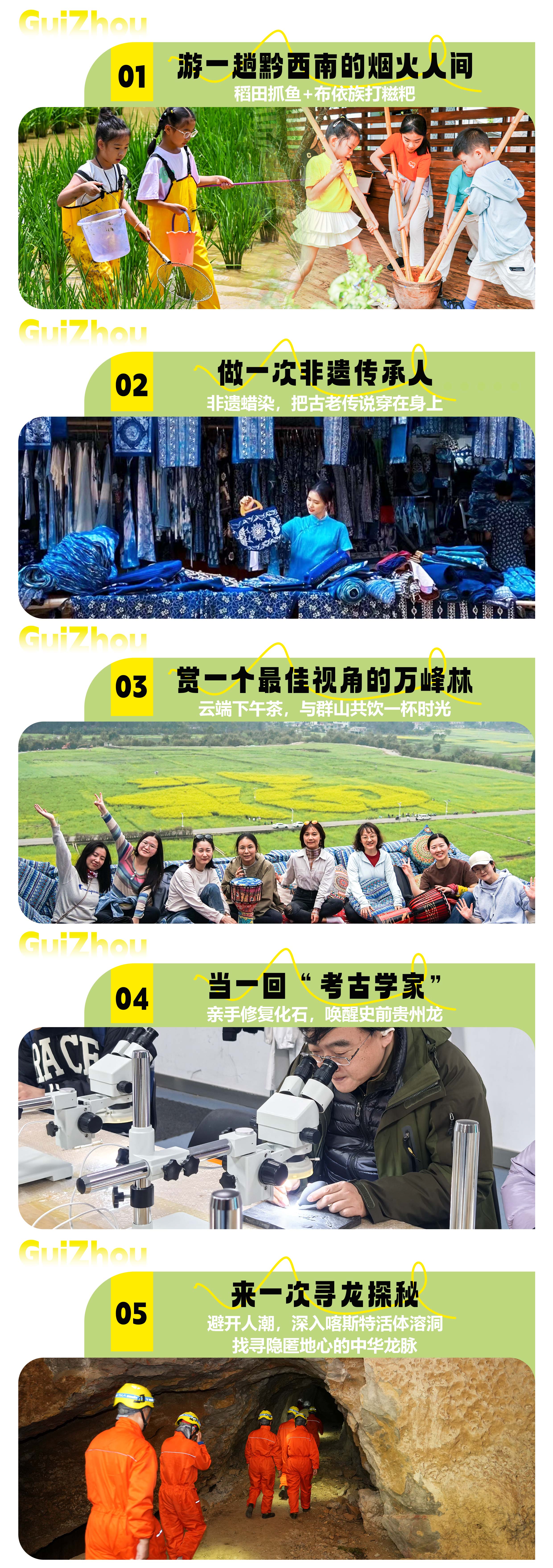 4、【体验】坝凌河大桥上桥观光、兴义地质博物馆化石修复,独家观景田园茶歇、非遗蜡染、布依美食打糍粑五彩糯米饭、稻田抓鱼、寻龙洞探洞