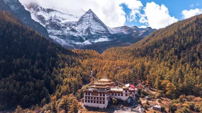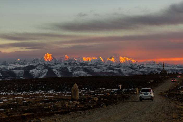 在游客接待中心乘坐景区观光车,车程约单边1小时左右,抵达扎灌崩,步行十分钟左右到达冲古寺,途径冲古草甸,然后自愿选择乘坐电瓶车(约6.5公里,往返70元,单程40元,电瓶车单边约20分钟)或者徒步(徒步约2-3小时)到达洛绒牛场,洛绒牛场背靠三座神山仙乃日、央迈勇、夏诺多吉,是观看三座雪山的最佳地点,后可前往珍珠海游览,可观看仙乃日雪山。游览结束后原路返回,乘坐观光车出景区后统一前往稻城县城入住,车程约为2小时左右。