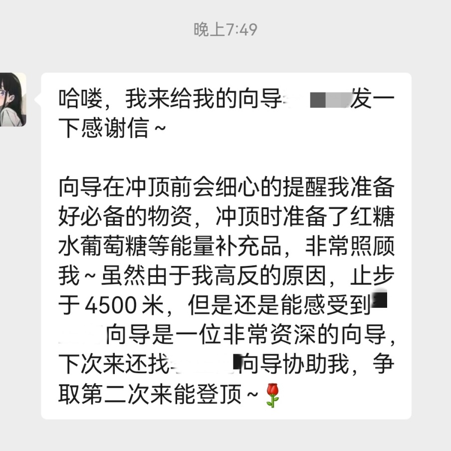 2、登顶给向导的小费,最低200元,随心给。