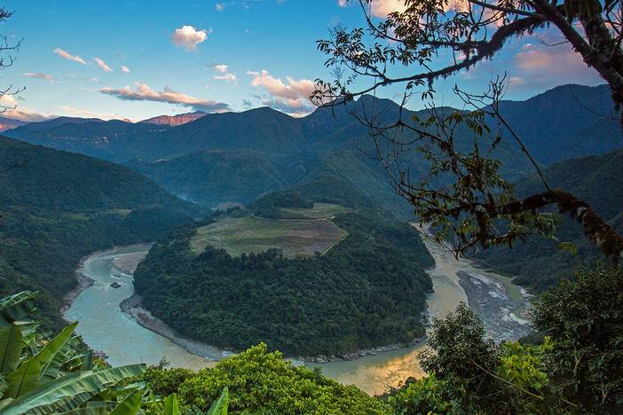 下午,我们抵达墨脱的标志性景点 ——果果塘大拐弯。果果塘大拐弯是雅鲁藏布江在墨脱境内形成的一个巨大拐弯,因其形状酷似一个棒棒糖而得名。站在观景台上,远眺雅鲁藏布江蜿蜒曲折,江水奔腾不息,周围的青山绿树环绕,云雾缭绕,宛如仙境。欣赏完这壮丽的自然景观后,我们前往墨脱县城入住,感受这座边境小城的独特魅力。