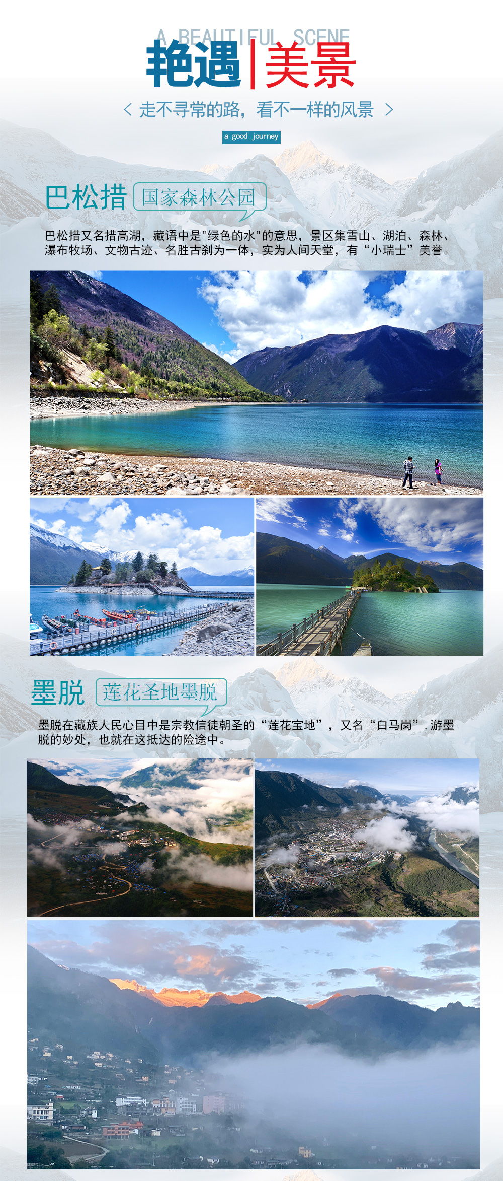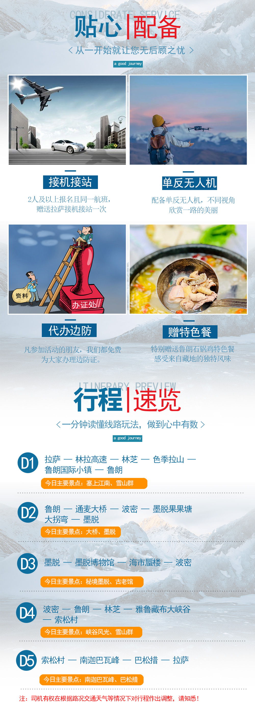 3、门票:全程景区门票(巴松措+观光车、雅鲁藏布江大峡谷(住在景区里,不含观光车,直接开车进入、卡定沟);