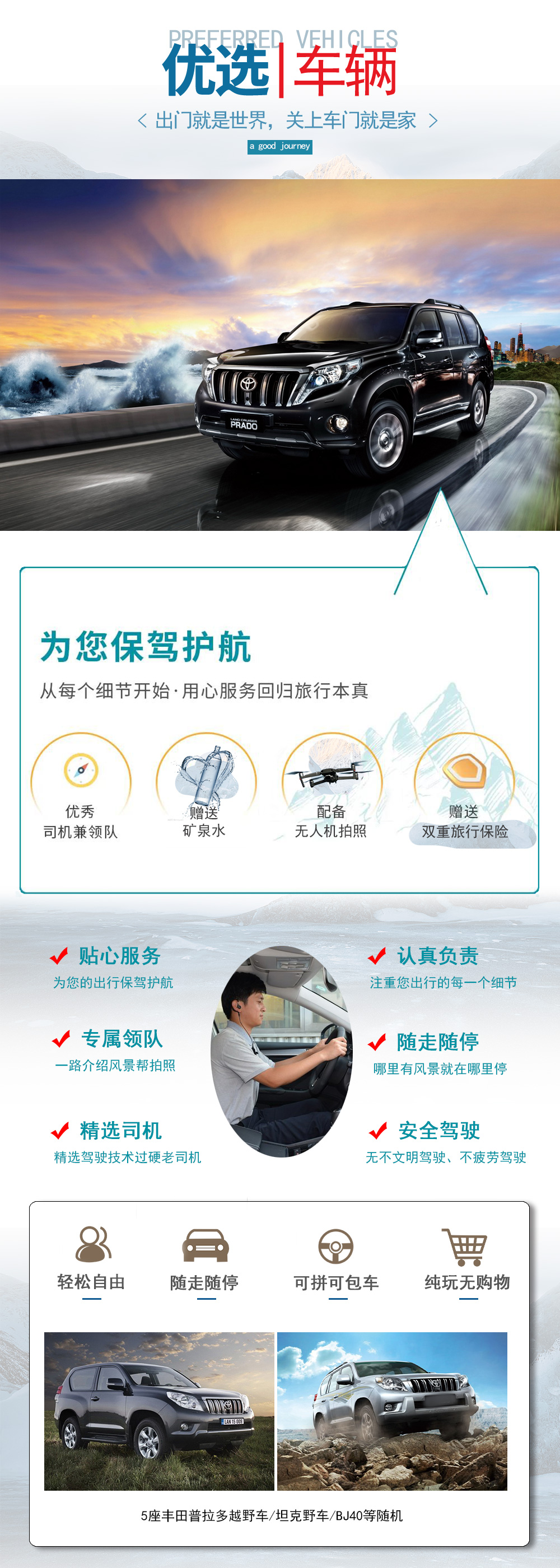 1、交通:全程5座普拉多正规旅游车,拉萨市区酒店上门接送;