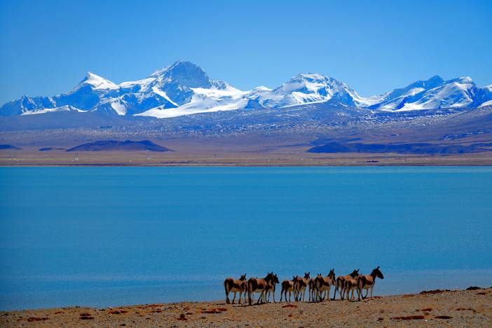 早餐后继续出发,前往玛旁雍错。玛旁雍错又称玛法木错。藏语意为“无能胜湖”,位于中国西藏普兰县境内。其周围自然风景非常美丽,自古以来佛教信徒和苯教徒都把它看作是圣地“世界中心”,是中国湖水透明度最大的淡水湖,藏发所称三大"神湖"之一。游玩后继续前行,来到公珠措参观,公珠错,西藏经阿里南线进入阿里地区的第一个高原湖泊,湖面海拔4786米,年均气温只有0-2摄氏度,风景很佳。然后一路遥望冈仁波齐神山的壮观,后到塔尔钦酒店入住