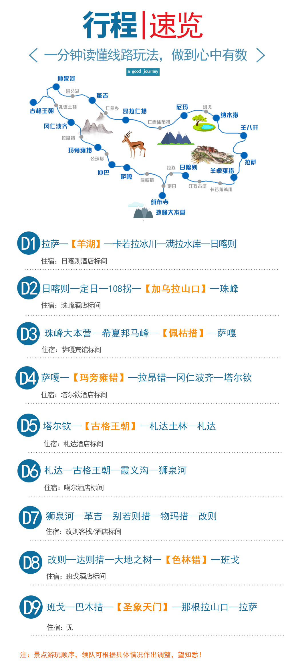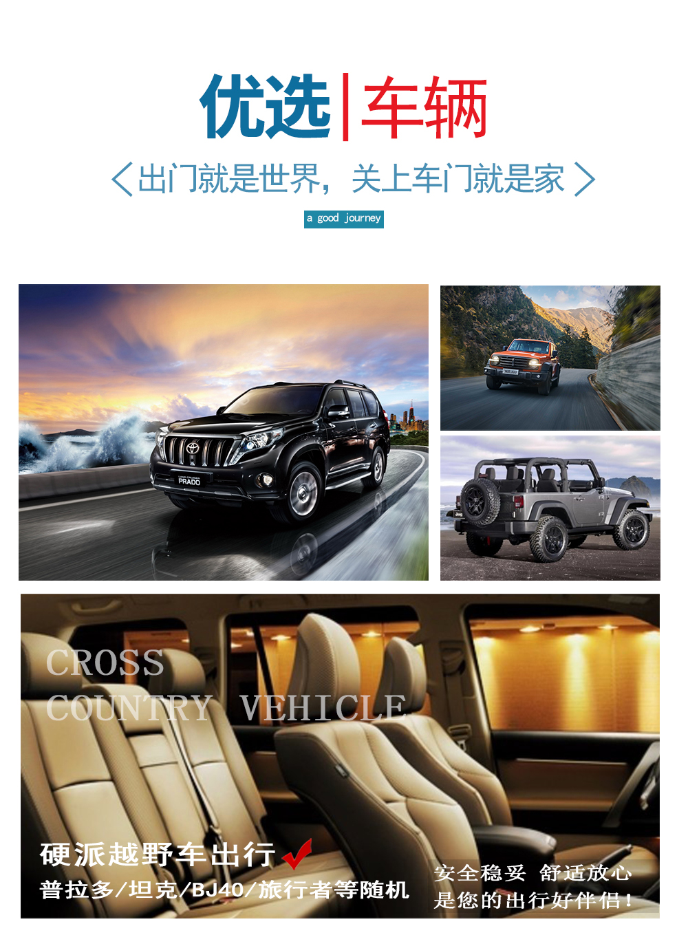 2、领队:全程由经验丰富的领队兼司机,熟悉路况、沿途景点、驾驶技术好,为您的旅途保驾护航!