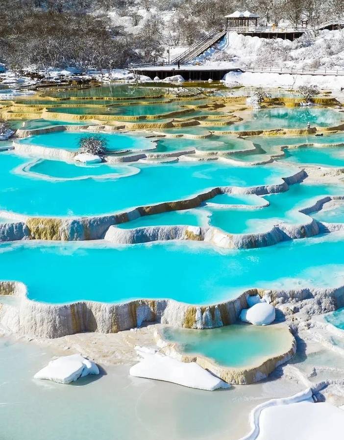 黄龙风景区:后乘车前往松潘县境内的素有人间瑶池美誉的游览 ,数千个钙化彩池形态各异 ,流光泛彩 ,长达2500 米的钙化硫是世界之最。沿途主要景点有洗身洞、金沙铺地、盆景池、黄龙洞、黄龙寺、石塔镇海、五彩池、转花玉池等。
