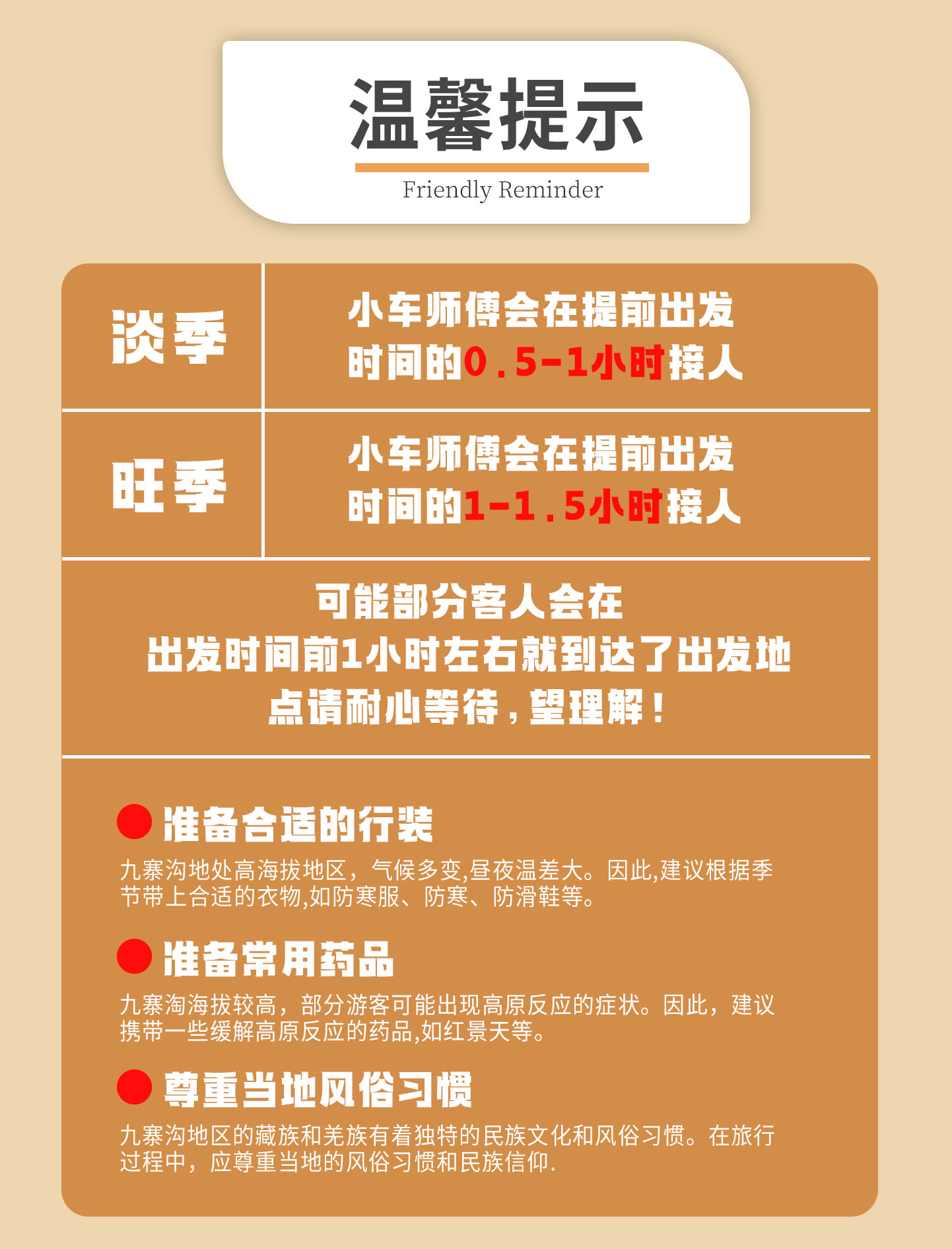 【出行通知】出行前一天下午会发送出团短信在您的手机上,接早师傅晚上6-8点之间联系到您对接接早时间。
