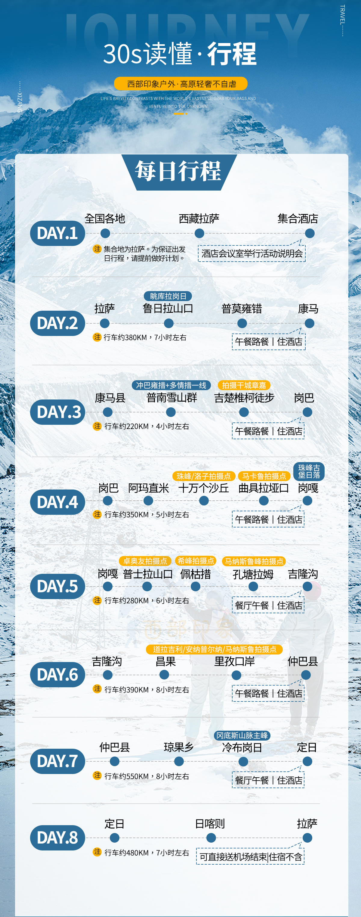 集合地点:拉萨市区酒店集合(提前7天微信群通知集合酒店和交通指南);