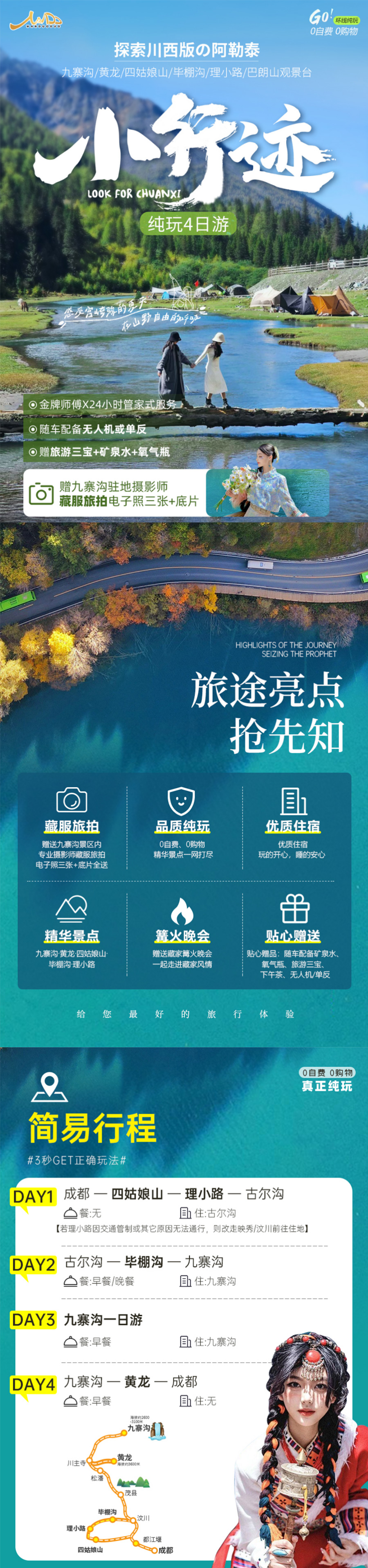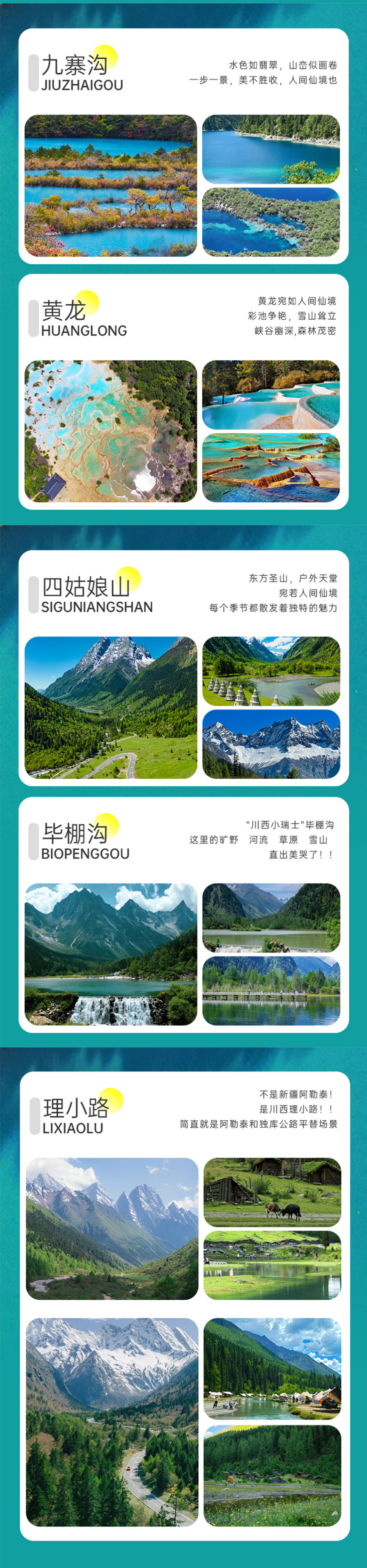 5:环线景点:九寨沟、黄龙、毕棚沟、四姑娘山错峰游览