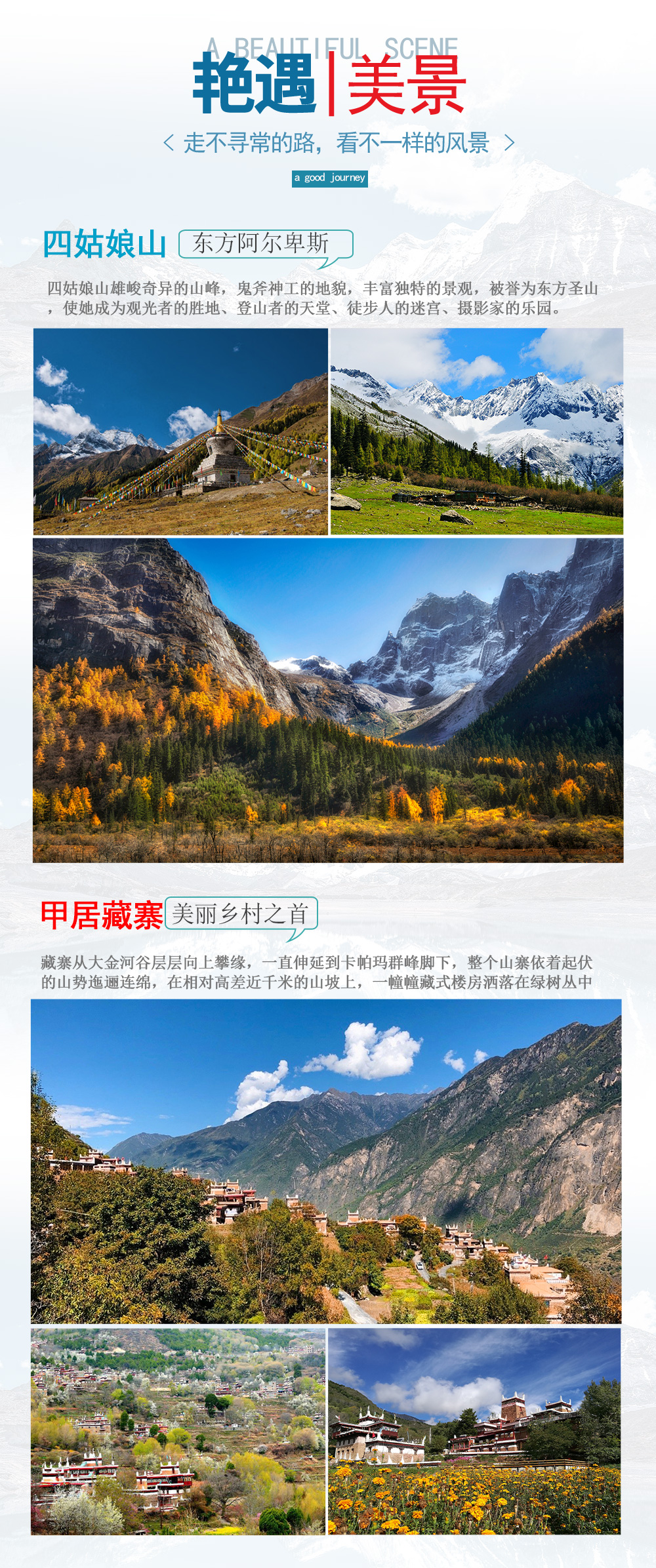 早餐过后7-8点出发(具体时间以领队短信通知为准),成都出发经都汶高速,途经卧龙熊猫谷前往四姑娘山猫鼻梁在猫鼻梁远眺,前面是海子沟,后面是四姑娘山,可观四姑娘山全貌,风景很是震撼;前往四姑娘山镇午餐,随后前往双桥沟景区游玩,【四姑娘山双桥沟,平均海拔约3500米,游玩时间约3小时,门票参考80元/人+观光车70元/人】沟内主要以雪峰、牧场、草地、森林等为主,沟内山势陡峭曲折,林木葱郁,是四姑娘山美丽的一条沟。漫步沟内,可体验到真正的牧区风光。每当春秋季节,沟内五颜六色,蔚为壮观。沟内有观光车直达沟尾,可以毫不费力,轻松观赏沟内奇景; 游玩过后入住小金县或丹巴县。