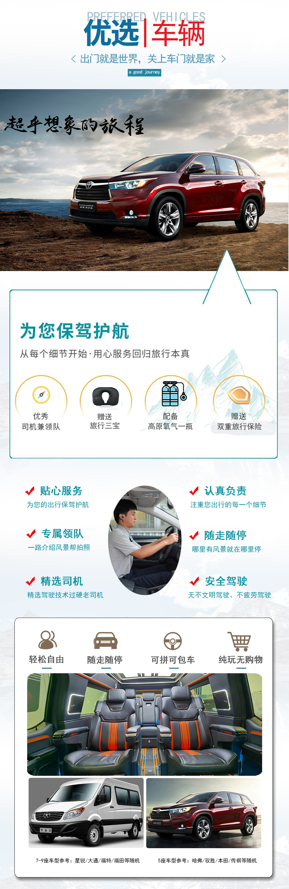 3.领队服务:全程由经验丰富的领队兼司机,驾驶技术好、熟悉路况、沿途景点为您的出游保驾护航!