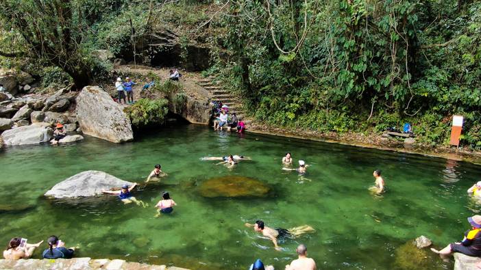 早餐后,出发前往滇西美丽富饶的潞江坝,沿着怒江一路前行,前往【百花岭】,走进小众秘境——高黎贡山,这里有着尚未开发的【野生温泉】—阴阳谷温泉!高黎贡山被誉为“世界物种的基因库”,原始森林中,物种何其丰富。飞溅的瀑布打在野芭蕉叶上,变成一颗颗晶莹剔透的露珠滑落。深山中,迷雾缭绕,两眼温泉从火山岩层间涌出!每到过年过节的时候,当地人就会来到这里,用温泉水祛病养生!我们要在这里感受空谷幽林,鸟儿齐鸣的森林泡汤。
