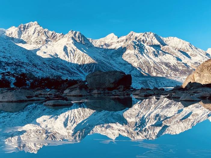 早上在然乌湖周边欣赏湖光山色,之后乘车前往来古冰川景区,来古冰川是一组冰川的统称,包括美西、雅隆、若骄、东嘎、雄加和牛马冰川,而雅隆冰川是来古冰川中最为壮观的一条,长12公里,从岗日嘎布山海拔6606米的主峰延伸至海拔4000米的岗日嘎布湖,在这里我们穿梭于万年冰川之中,徒步在蓝冰之上,亲手触摸万年蓝冰的肌理,在亘古寒冰前感受时空的凝固,欣赏大自然鬼斧神工的壮美景色,下午返回波密县城入住。