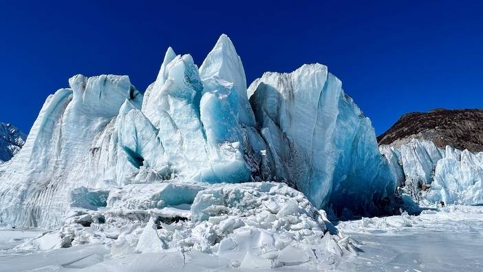 (2)1-3月初湖水紧密冰冻,天气稳定,是近距离游玩冰川的最佳季节。