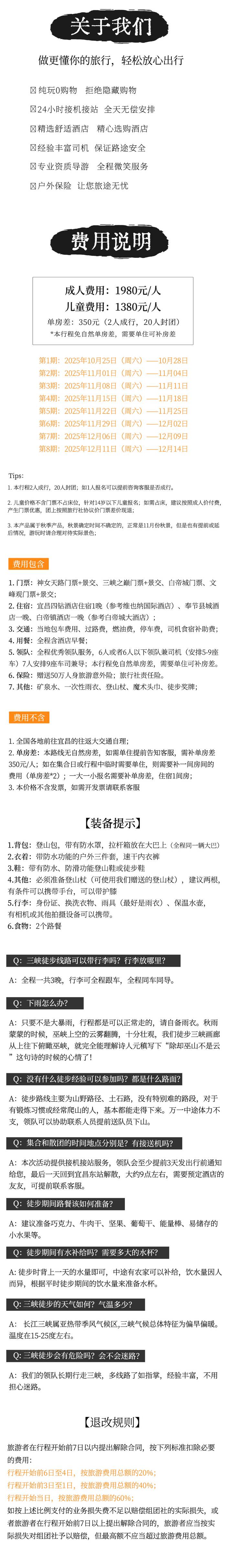 7. 违反行程安排,造成人员及其他意外,个人负全部责任,组织方保留其追究法律责任的权利。