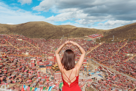 早餐后,从色达县城出发,前往色达,色达平均海拔3900米,占地面积4平方公里,寺院建筑群占地2.35平方公里,建筑面积约1.7平方公里。是世界上最大的藏传佛学院之一,这里的僧舍很壮观,连绵数公里的山谷布满了密密麻麻的小木棚屋。谷底和山梁上分布着几座寺庙和佛堂,建筑规模虽都不很大,但装饰考究而辉煌;身披桨红色僧袍的喇嘛和尼姑来来往往,空气中充满生机和祥和气氛。游览时间约1小时。午餐后,途径翁达,晚上入住丹巴城酒店休息。