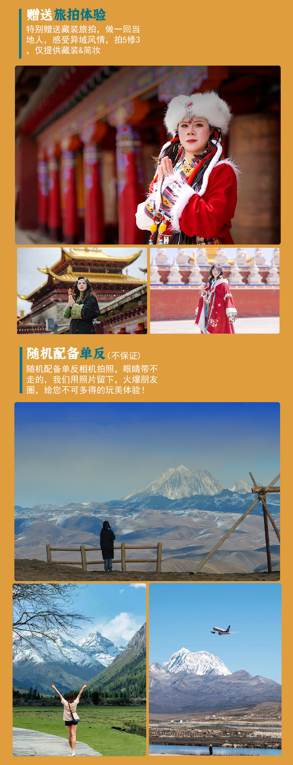 4.门票及小交通:全程景点门票及观光车不含(双桥沟门票80元,观光车70元,丹巴:门票50元,观光车35元,墨石公园:门票观光车80元/人 木格措:门票105、观光车90),红海子斯丁措卫生费,鱼子西中转车自理约80,若原车中转,同样收取中转车费;