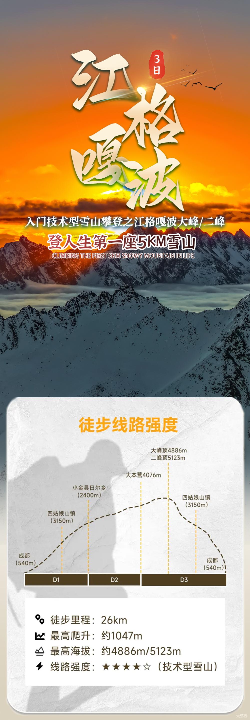 1.【冬季不封山】大多数雪山冬季封山,而江格尕波冬季依然可以攀登,一人成行