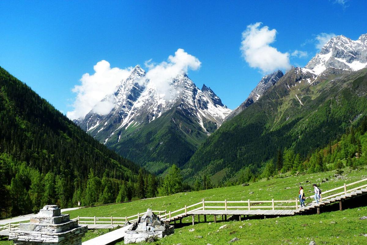 15:00—19:00 沿着理小路前往古尔沟小镇。途径凉台沟红石滩,观看除了海螺沟之外的第二大红石滩。之后经过 大二普,不仅有海子和雪山,沿途还有各种的风景,如瀑布、溪流、森林、草甸、牧场等,这里是一个适合徒步、游 玩,周边还有很多森林【若理小路因交通管制或其它原因无法通行,则改走映秀/汶川前往住地】