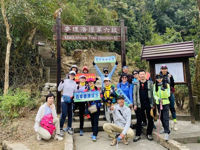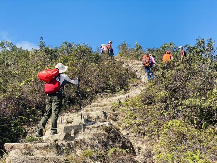 08:30 领队带领热身后开始徒步,今天挑战6、7、8段,也是香港的一条越野跑拉练线路之一的“针草帽”,也是较为辛苦