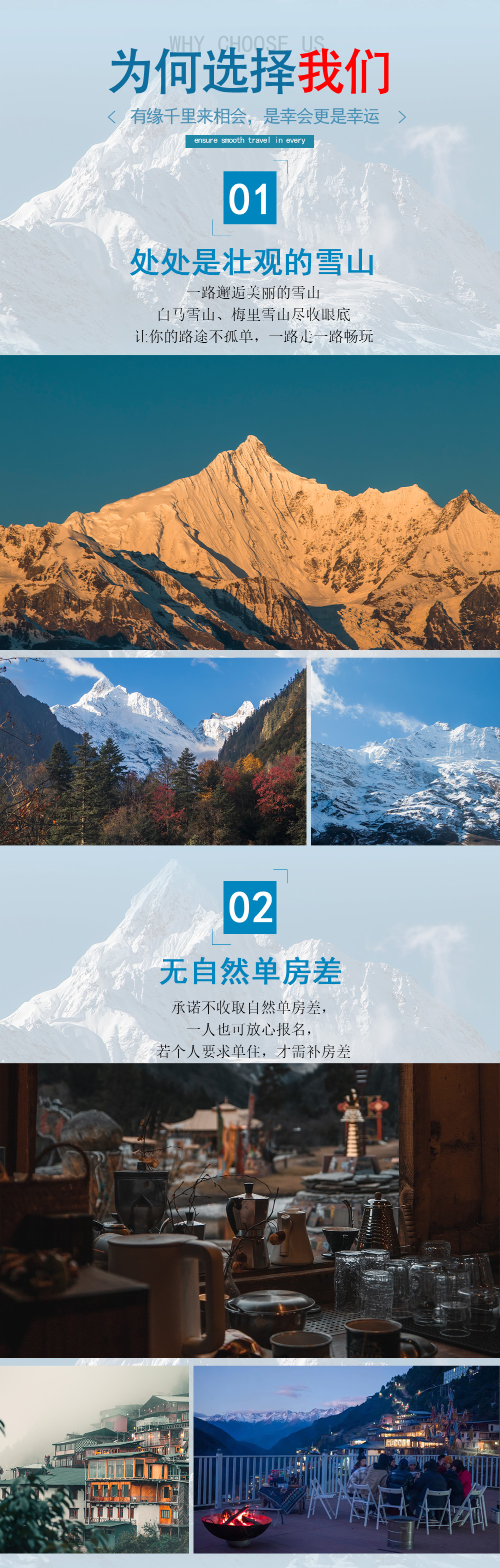 2、住宿:按行程所列标准入住。(其中:①飞来寺酒店1晚;②雨崩客栈2晚;无自然单房差)