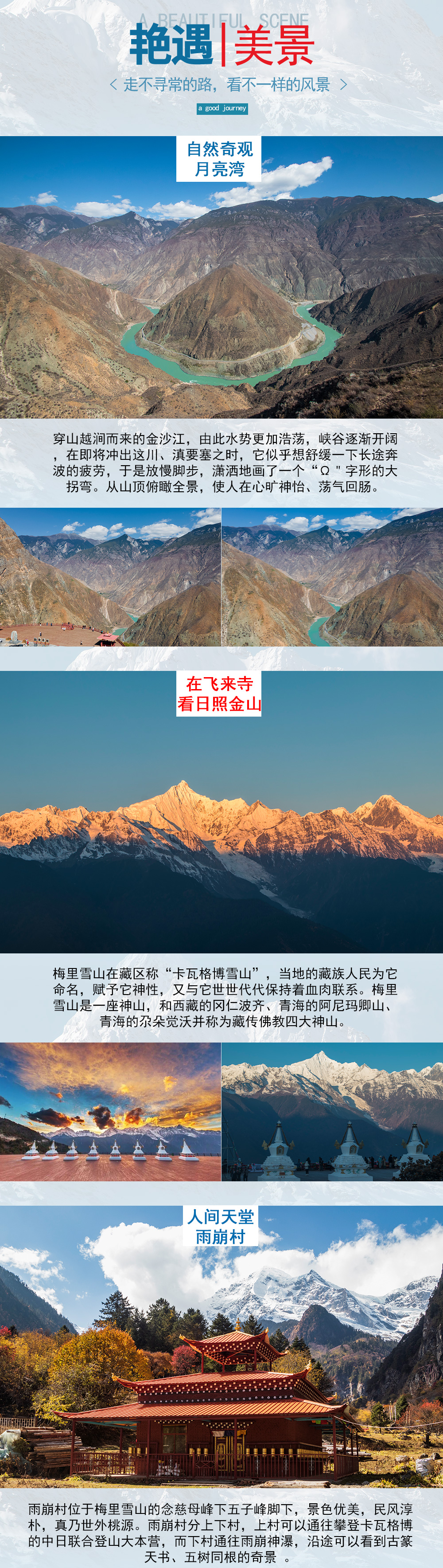 丽江—金沙江月亮湾—奔子栏—白马雪山垭口(海拔4292米)—梅里雪山(飞来寺)