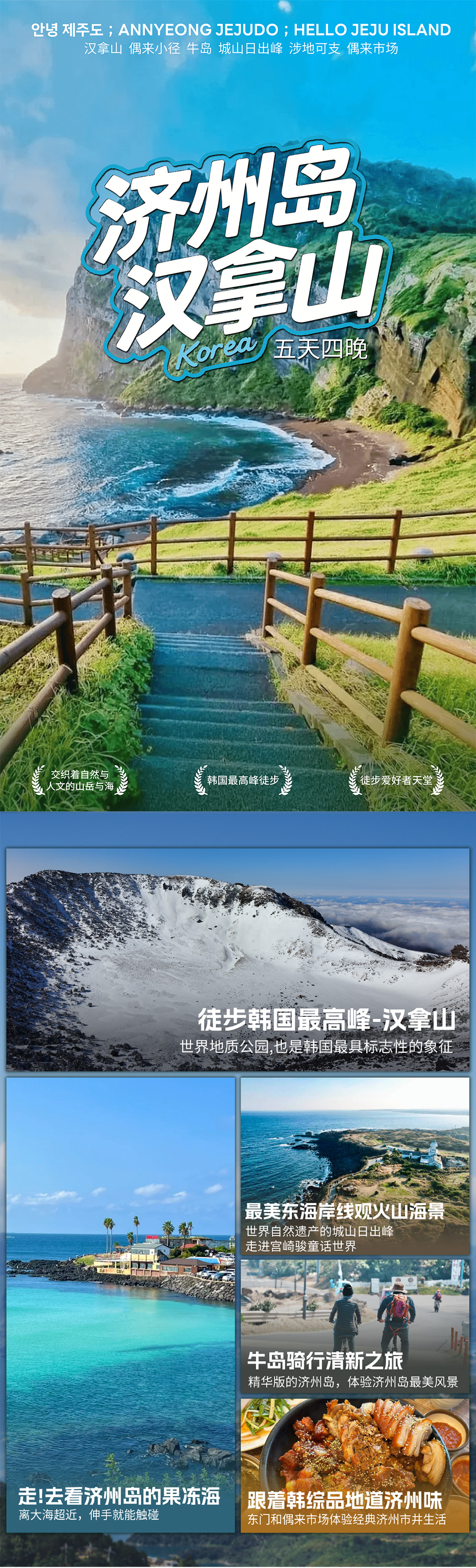 · 地理环境:济州岛的地形以山地和火山口为主。如果计划前往汉拿山等登山活动,务必随身携带足够的水、食物和适当的徒步装备。