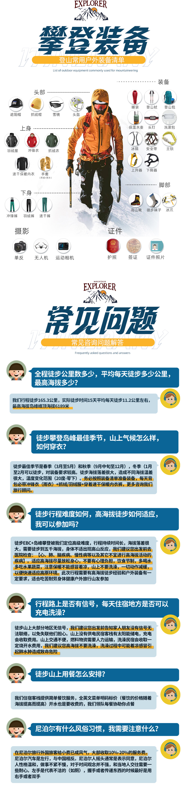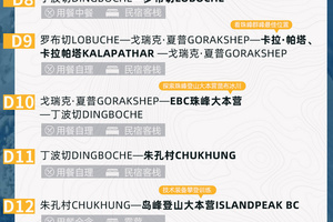 【其他消费】行程中其他个人消费、背夫小费(最低约400元/人),领队(约5美金/人/天,约600元)夏尔巴协作登顶小费550元起)均不包含