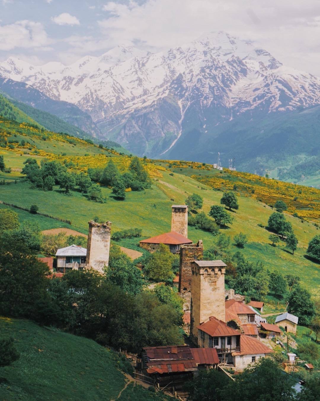 从梅斯蒂亚出发,踏上一段16公里的徒步之旅,向着迷人的bi村进发。沿途穿越海拔1680米的高加索山区,目之所及皆为旖旎美景:阿尔卑斯般的草甸、森林与冰川相互辉映,763米上升与523米下降交替,让行程富于变化。6至7小时的慢行中,呼吸纯净空气,远眺雪山映衬下的斯瓦涅季古塔群,仿佛置身于童话秘境。