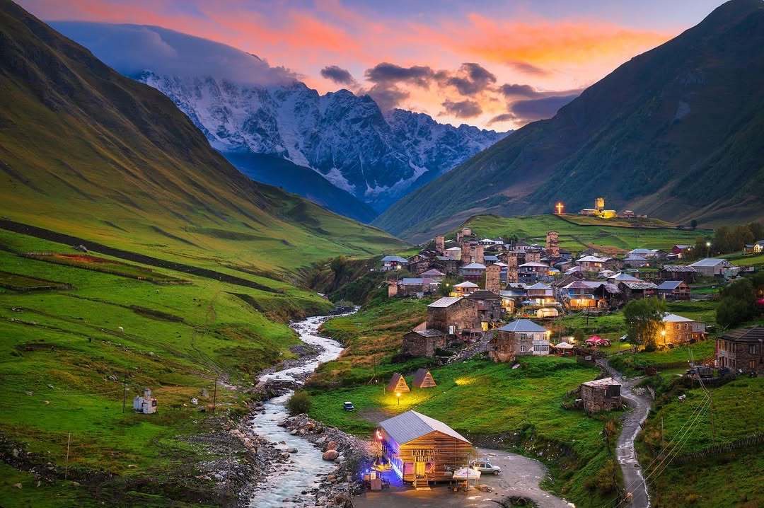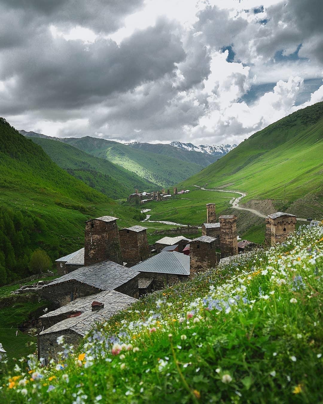 从伊普拉里启程,踏上通往乌树故里的13公里徒步旅程,约5-6小时轻松步行,感受高加索山区最迷人的一段风景。677米的攀升与436米的下降交替起伏,沿途穿越苍翠草甸、原始森林,山风徐徐、空气清新纯净。抵达海拔2000米的乌树故里,这座欧洲最高的古老村落,仿佛穿越千年而来:高塔耸立,古屋错落,冰川与雪峰环绕其间,静谧而神秘。漫步村中,时光仿佛停驻,尽享纯净与宁静。