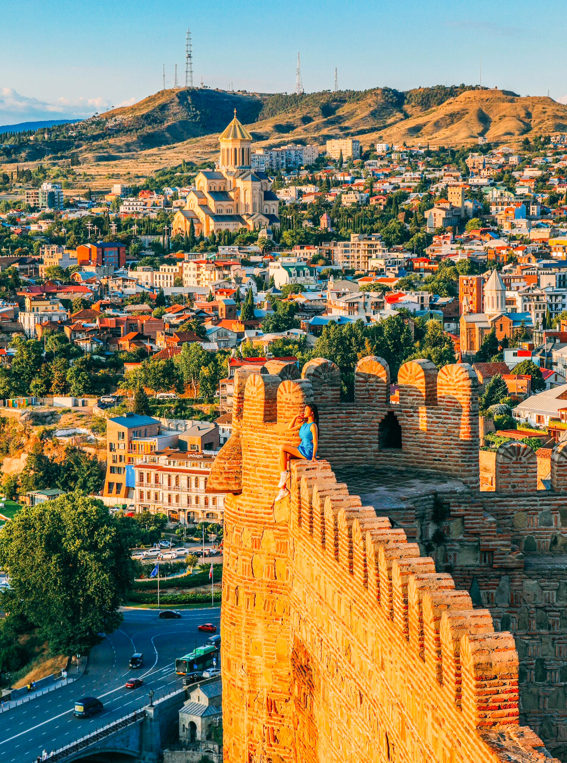 随后乘坐【第比利斯索道】缓缓升空,饱览第比利斯老城区的古典与现代融合之美。抵达山顶后,来到母亲堡垒,欣赏恢弘的城堡遗址,感受城市历史与岁月沉淀的魅力;放眼望去,古老教堂屋顶与现代建筑交相辉映,格外迷人。