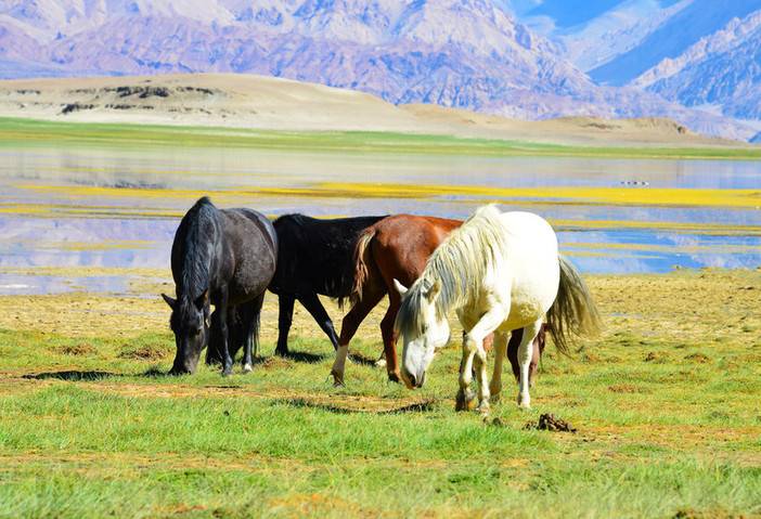 途经【藏北草原】 藏北草原:藏地⾯积最⼤的天然草原 由昆仑⼭脉、 唐古拉⼭脉和冈底斯⼭脉所环抱,平均海拔4500 ⽶,是西藏⾯积最⼤的天然草原。草原、草甸、⼭ 川、⼽壁、湖泊遍布期间。晚上入住当雄县