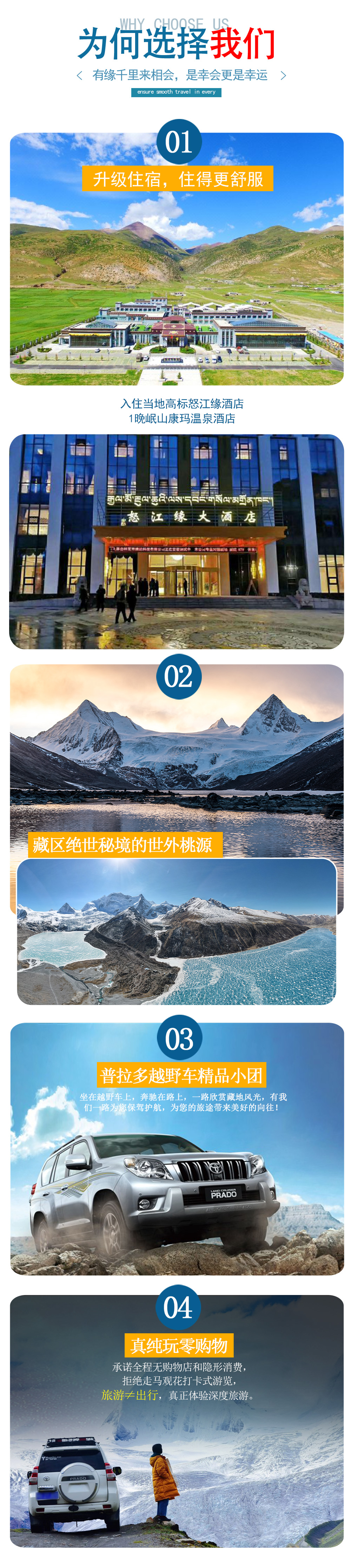1.车辆:全程4天正规丰田霸道旅游车(封顶4客人/ 车),酒店接送 ,