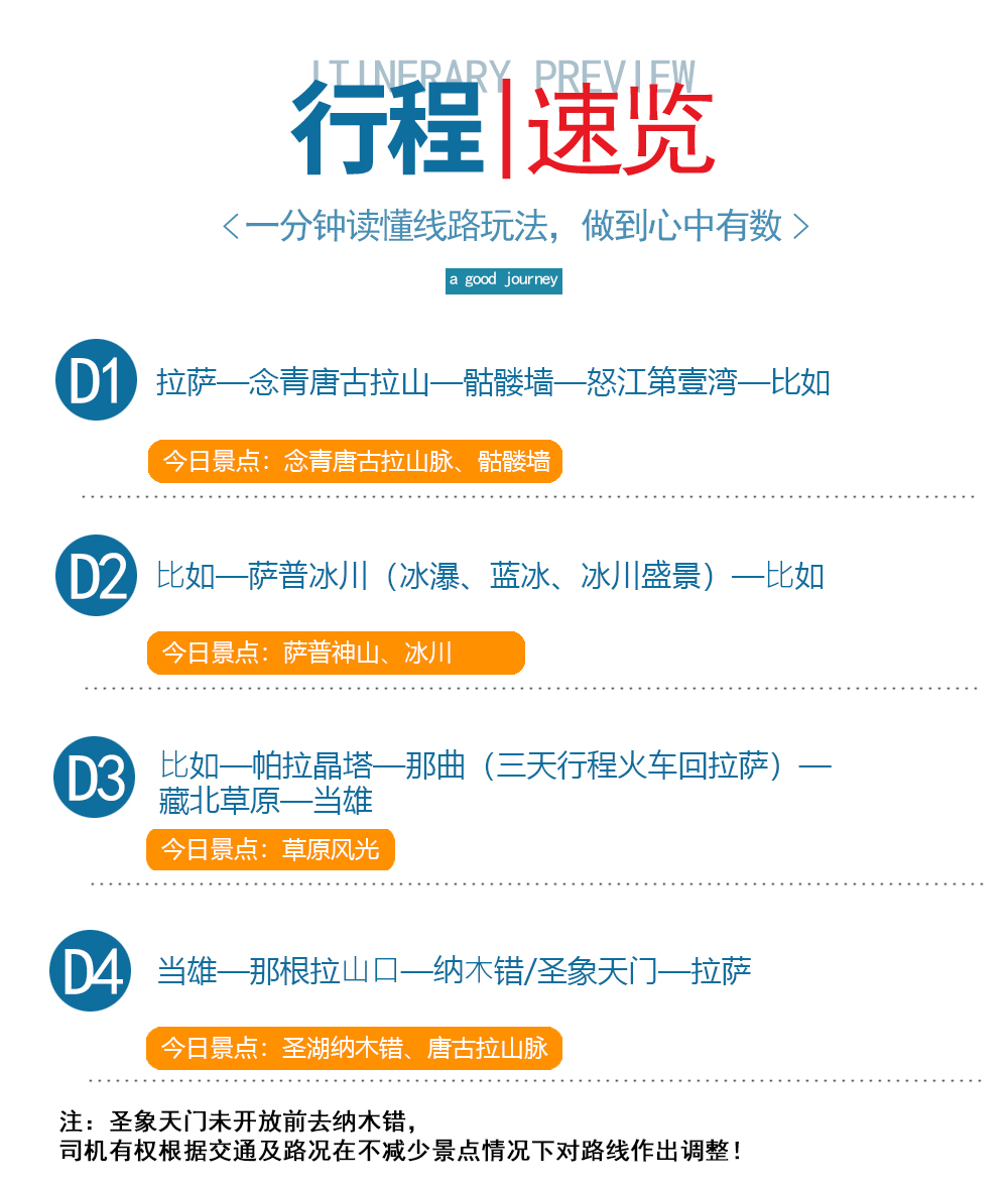 *以上行程、时间可能会因天气、路况等原因做相应调整,敬请谅解