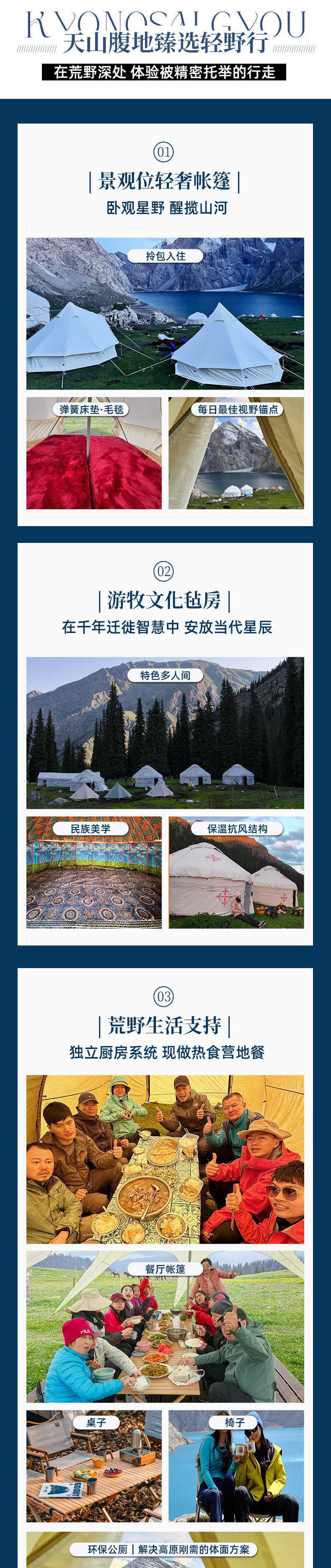 温馨提示: 1.阔克苏河到特克斯路况复杂,受天气影响较大耽误可能很晚到达特克斯,建议安排特克斯住宿一晚; 2.乌孙古道受天气和当地政策影响等不确定因素影响较大,建议返程预留1-2天机动时间。 领队与大家一起开启寝宫宴;